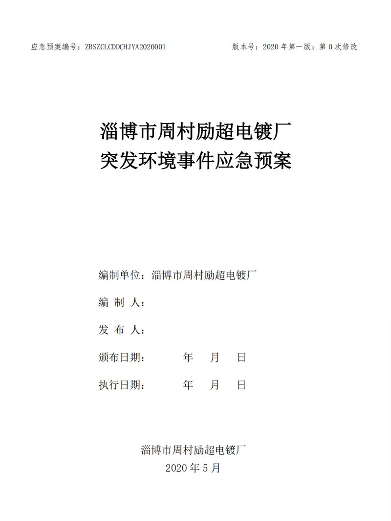 淄博市周村勵超電鍍廠環境應急預案